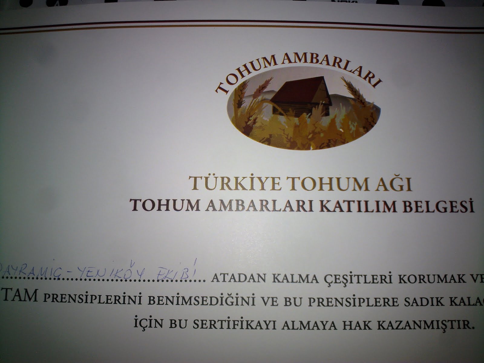 Yerel tohumları ektiğimiz için Tohum ambarı belgesi verildi.