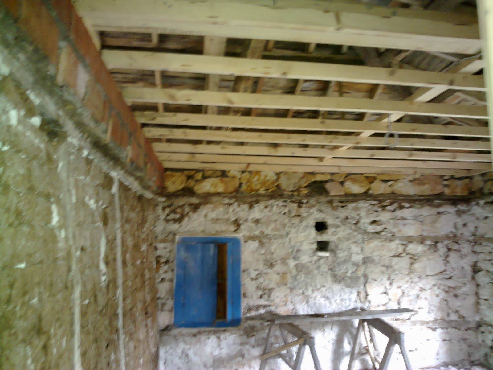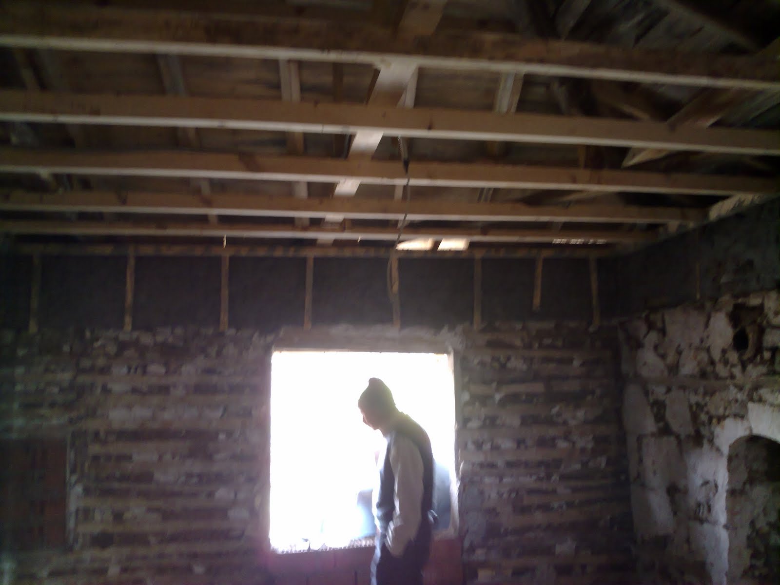 Evimizin çatısı bitti,içeride toprak sıva yapıyoruz.