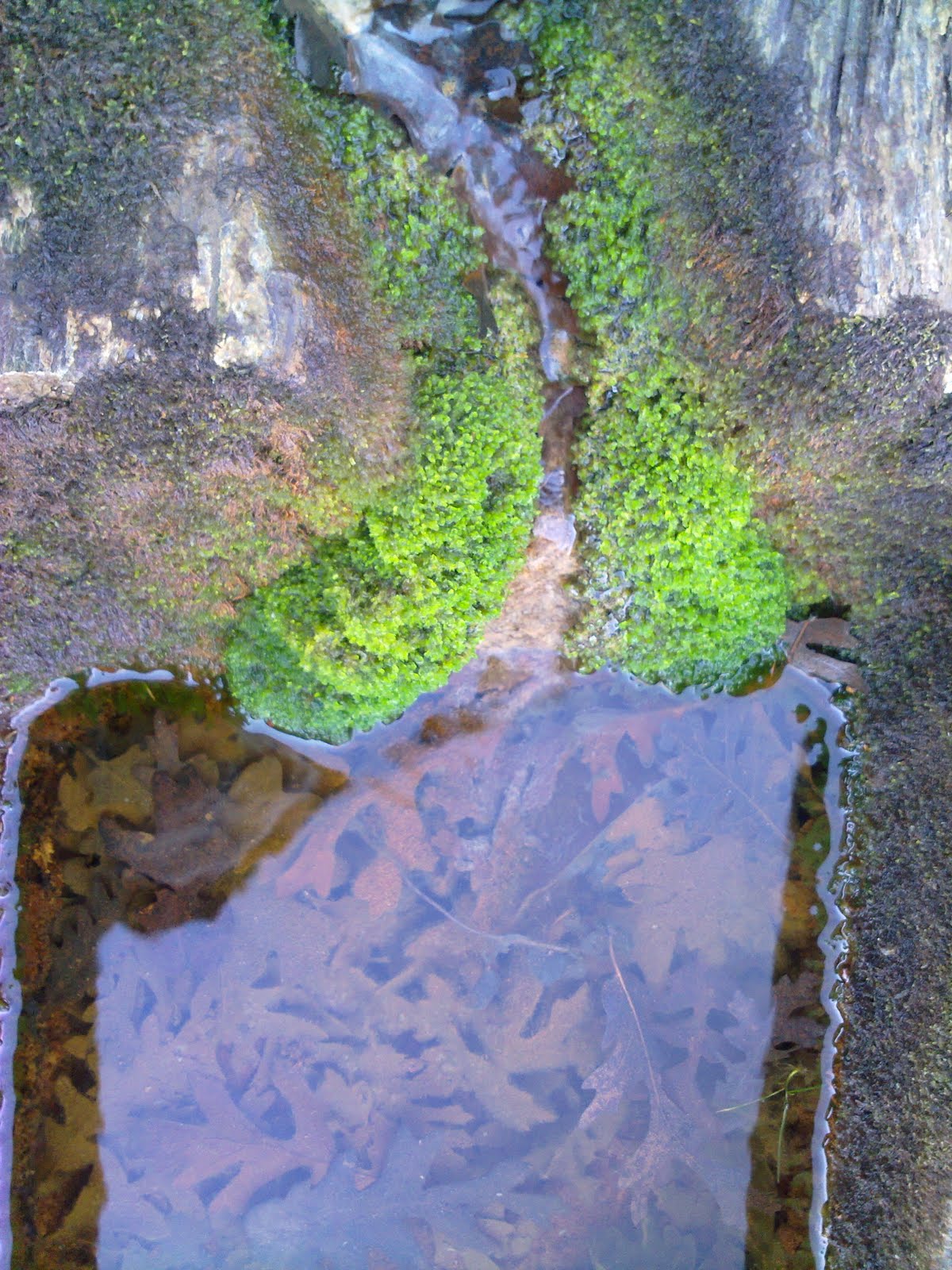 Su ,aşağıdaki bahçeye oyma kütük kanaldan akıyor.